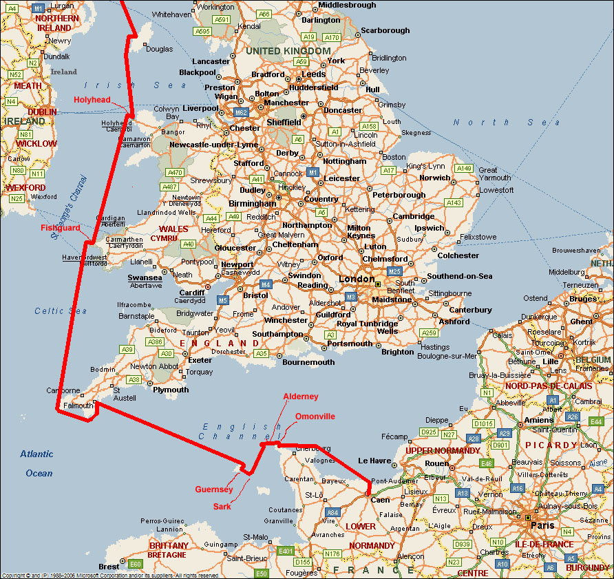 great dinner with old friends. This is a shot of the small island of Herm, from Guernsey. From Guernsey, we sailed overnight to Falmouth in SW England, then on up the Irish Sea. |