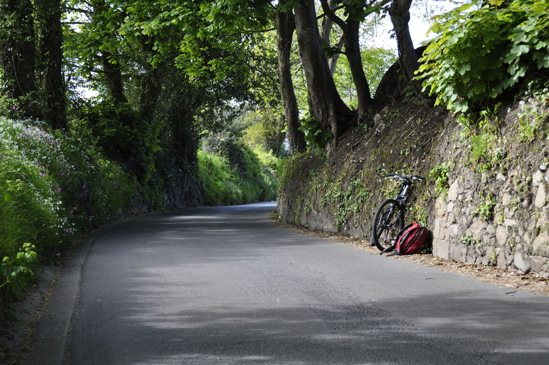 Sark, with lots of international banks and tourist services. Most of the roads are quite narrow, and many are well below the level of the fields for some reason. A bike is better than a car for getting around much of the time. |