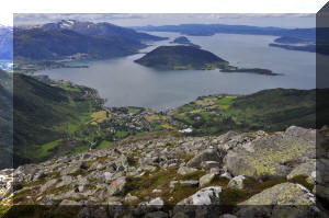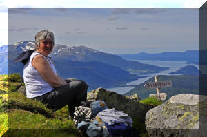 We did not go all the way, because the top was snow covered and we were wearing shorts and running shoes. The village of Rosendal is in the lower centre |