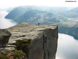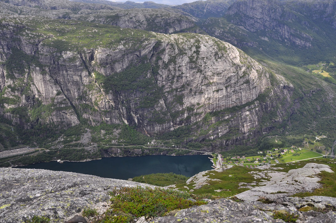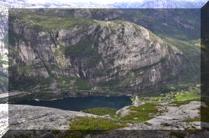 Preikestollen (Pulpit Rock) but did not climb it. As we passed below, we could see about 20 people looking over the edge. There are photos on the web with hundreds of people on the top. |