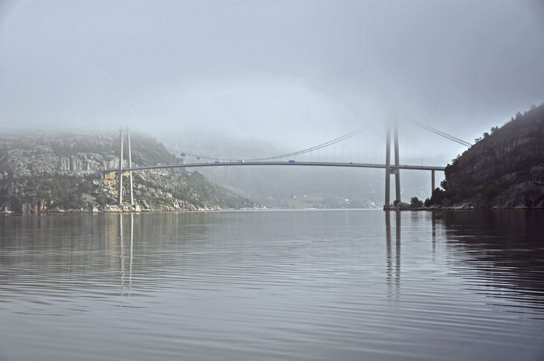 standards, but is home of a few well know attractions. The entry is crossed by one of the many large bridges in Norway. The Norwegians charge the oil companies MUCH higher royalties than Alberta does, and have used the receipts to develop their infrastructure in many ways, including bridges or tunnels to a considerable number of islands which were formerly somewhat isolated. (Double click any picture to see full size, then use the back button on your browser to return here) |