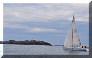Shetlands and back starting the next day. This photo shows them at the almost windless start. After that, they had a fairly rough trip to the Shetlands as the wind picked up and veered ahead of them. |
