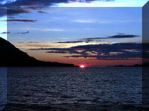 left. (Double click any picture to see full size, then use the back button on your browser to return here) The visible midnight sun extends about 40 miles South of the Arctic Circle itself, due to refraction in the atmosphere. . |