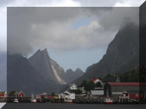 | . We found the boatyard in Bodo exceptionally helpful, so booked space to leave Milvina there for the winter. The town is quite pleasant with good services, as well as being he Northern terminus for the Norwegian railway system. After a few days, we headed West for the Lofoten Islands, although as this photo shows we were leaving some good scenery behind. (Double click any picture to see full size, then use the back button on your browser to return here)After |