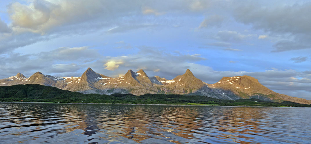 The Seven Sisters were under cloud as we approached, then the sun came through about 11PM as we sailed along the North side |