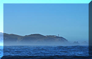 We anchored behind the cape and hiked up to the lighthouse, where were lucky to see on of our fellow sailors arriving through the mists and sea foam in Zulu Warrior. |