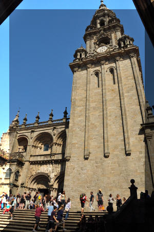 ![]() Many pilgrims make treks of up to a month from various points in France to the cathedral in Santiago de Compostella, which is about 50 km SW of La Corunna. We took the train, along with several other Ocean Cruising Club (OCC) members who were joining us for a cruise south. The town is of course beautiful, with the cathedral being its centrepiece. We had a great, loooong, lunch with the other OCC crews, as well as marveling at the sights. Double click to see full size, then use the back button on your browser to return here) |
