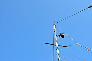 The owner cheerfully climbed our rigging, (10mm stainless wire) barefoot, hand over hand, to inspect and  measure it.