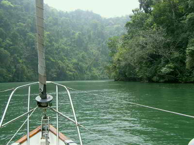 A dozen miles upriver we stopped in to consult with Cayo Quemado Sails & Rigging bay with no road access whatsoever.