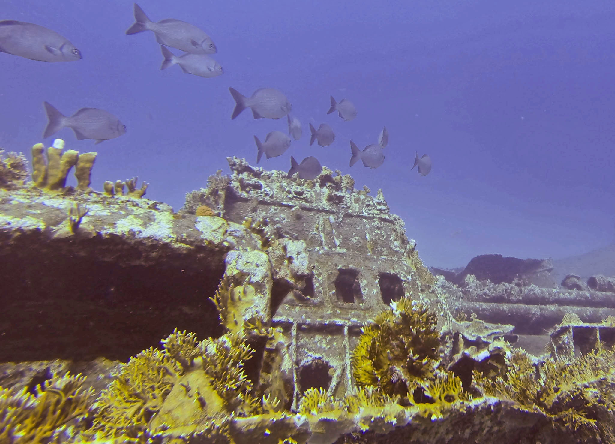 Diving around the island is fairly good, and the boat trip around to