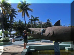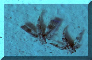 the dive site was spectacular There is not a lot of coral, but swimming around this wreck was fun Like anywhere in the Western Caribbean, there are Lionfish, shown below. These are an invasive species from the Pacific, which are killing many local fish. the Lionfish has a horrible sting, but are delicious to eat. A bounty is often paid for dead ones, and they are served quite cheaply in local restaurants. |