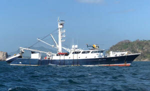 | After transiting the Canal we spent some time on the Pacific side stocking up, preparing the boat, and crising some of the local islands. These are quite nice, but not spectacular. We saw evidence of the extensive Panamanian fishing fleet, including some who carry a helicopter to spot the fish. | |