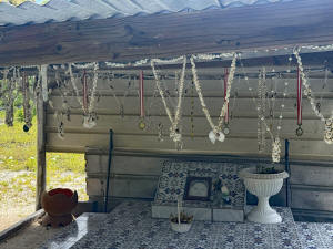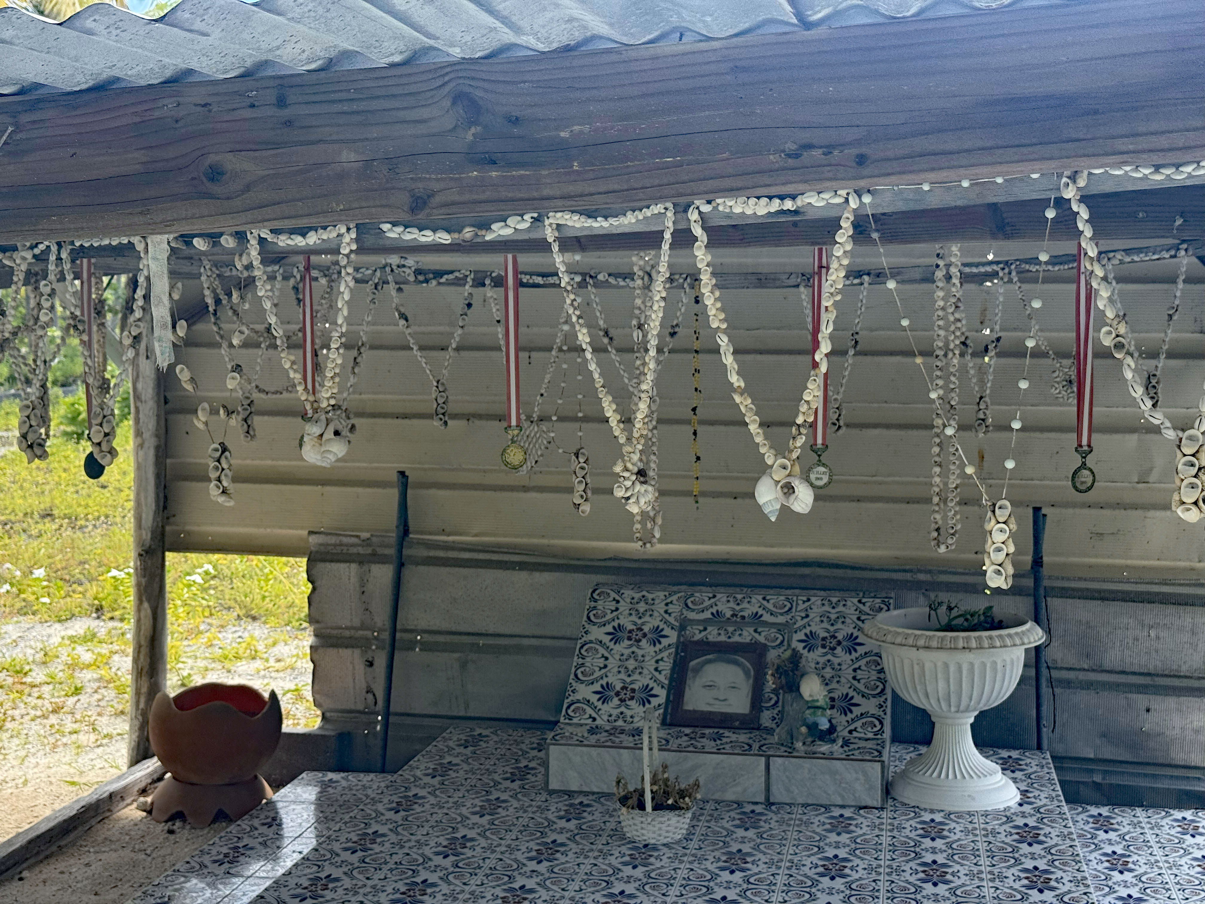 to enjoy our bikes, and a large graveyard with curious tomb ornaments. Neil had to fly to Tahiti for a scheduled intra-ocular injection, while André and Heather covered all the roads by bike. André flew home from Hao and Heather's brother Peter joined the crew. |